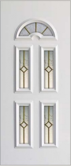 SKRZYDŁO O GRUBOŚĆI 30mm - SPECJALNE WZMOCNIENIE STALOWE W PROFILU O GRUBOŚĆI 1,5mm. OZDOBNA SZYBA Z GRAFIKĄ + ALUMINIOWY OKAPNIK NAD PROGOWY.